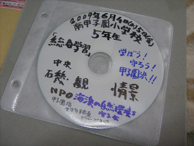 後日、はまん婆さんは干津の観察の様子と見つかった生き物を撮影した写真をCDに入れて、小学校へ渡されたそうです。僕にも同じCDを送ってきてくれました。この手書きのCDを見ただけでも、なんだか泣きそうになりますね。干潟への想いがあふれていると思いませんか。こういうものがすごく大事だと思います。