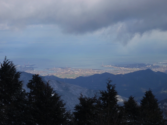最後にこれは石鎚山のスキー場から撮影した加茂川河口。加茂川と中山川が河口部で合流し、大きな河口域を形成しています。