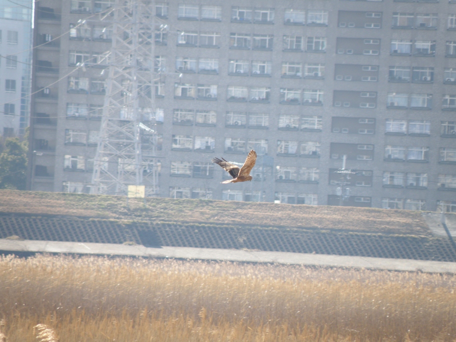 大阪のど真ん中で、高層ビル群をバックに飛ぶチュウヒの姿は、十三干潟が都会の中に残された大自然であることをまさに象徴する光景だと思う。野鳥観察を通して自然の豊かさを知る、十三干潟でそんな観察をこれからも続けていきたい。