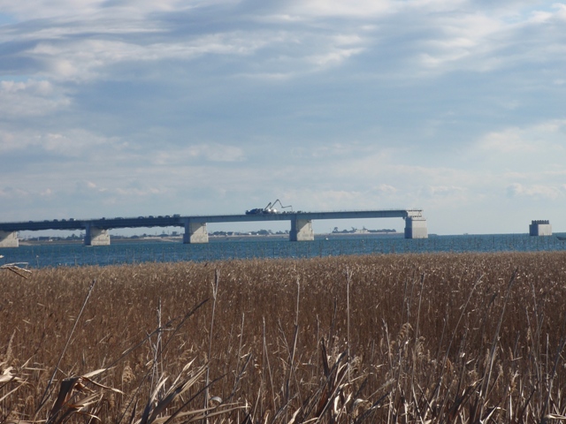 とくに東環状大橋は現在まさに河口部で工事が進行中で、河口の風景がどんどん変わっています。写真は今月撮影した工事中の東環状大橋。橋脚が立ち、すでに大部分の橋げたが架かってしまいました。(上の写真)